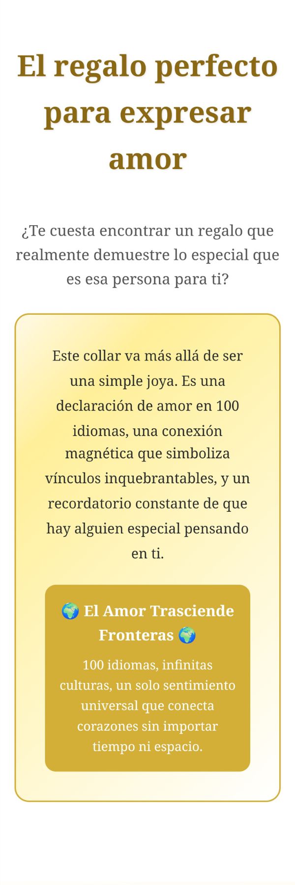 Mi mejor amiga y yo llevamos 15 años de amistad. Este collar representa todo lo que hemos vivido juntas. Es muy emotivo saber que dice "te amo" en tantos idiomas.