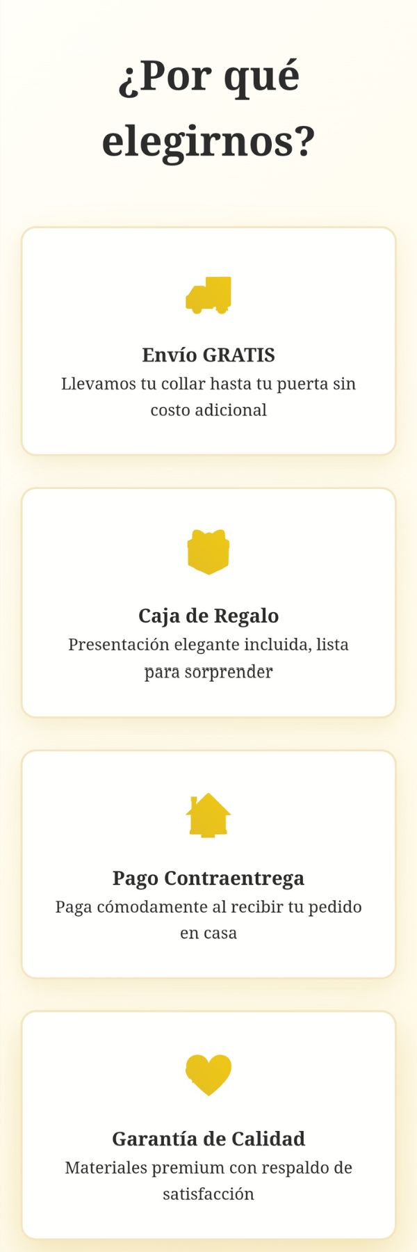 Excelente servicio. Llegó en 3 días y el pago contraentrega me dio mucha confianza. El collar es tal como se ve en las fotos. Mi novio quedó encantado con el regalo.