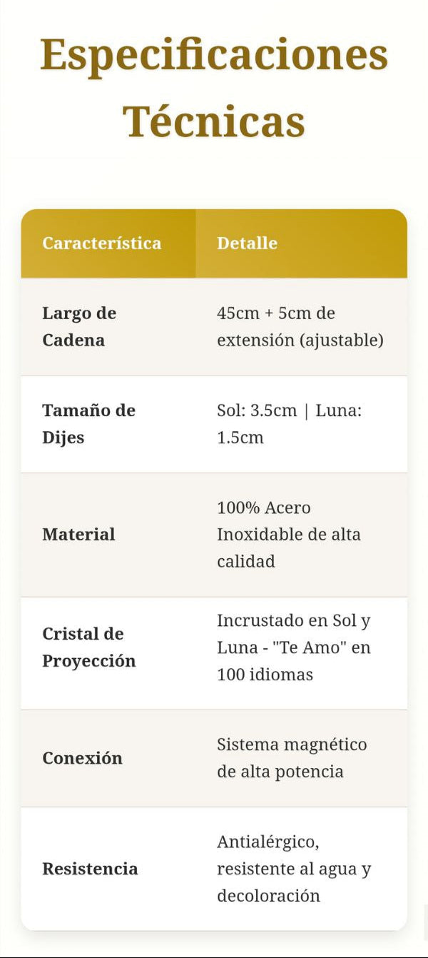 NUEVO Collar CRYSTAL (Sol y Luna) + Proyección "TE AMO" en 100 Idiomas